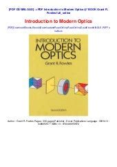 [UniqueID] - Read Online INTRODUCTION TO MODERN OPTICS FOWLES SOLUTION Reader